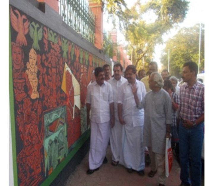 ആർട്ടീരിയ പ്രൊജക്ടിന്റെ ഭാഗമായി മതിലിൽ ചിത്രം വരയ്ക്കുന്നു